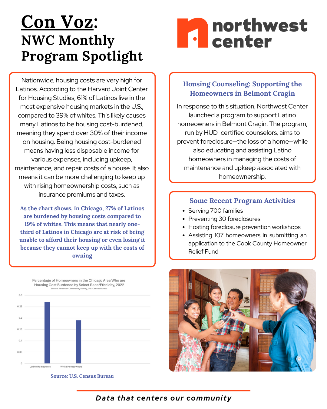 📈 This month’s Con Voz looks at housing cost burdens facing Latino homeowners — and how Northwest Center’s Housing Counseling supports families in Belmont Cragin.